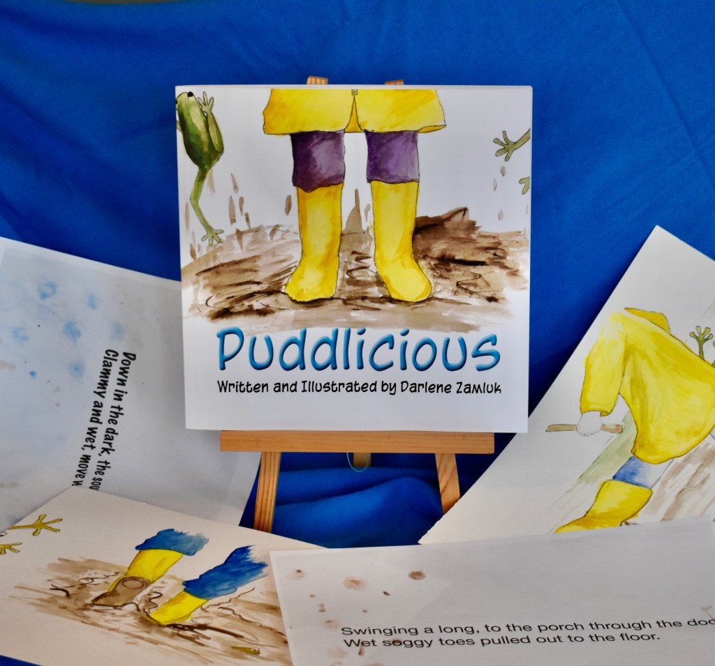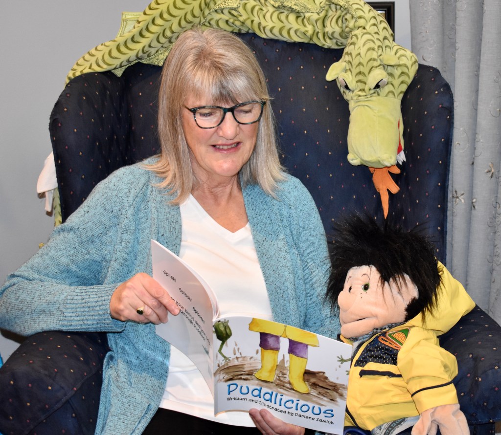 This West Coast Grama from Campbell River spent a lifetime playing with children. Her career as an Early Childhood Educator enabled her to weave her love of music, art and the outdoors into her daily play with the children. Her idea of an ideal day is grabbing her jacket and an grandchild and heading to the rainforest or the ocean for a walk or play. Her new book “Puddlicious” is a reflection of her love of play, the outdoors and art.